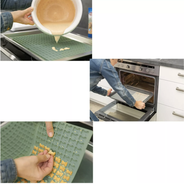 Mit dieser Silikon-Backmatte können Sie in einem einzigen Backvorgang eine große Anzahl leckerer Hundekekse ganz nach Ihren Wünschen und mit besten Zutaten selbst zubereiten.