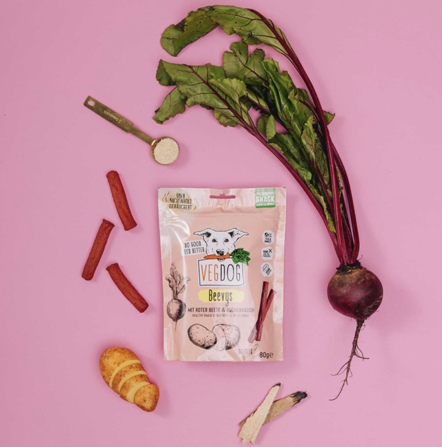 Hunde lieben unsere VEGDOG Leckerlis mit kräftigem Buchenrauch-Aroma. Rote Bete schmeckte noch nie so gut wie in diesem gesunden und veganen Snack. Unsere BEEVYS eignen sich perfekt für die kleine Belohnung zwischendurch, beispielsweise beim Training. Durch die Einkerbungen kannst du sie ganz einfach portionieren.