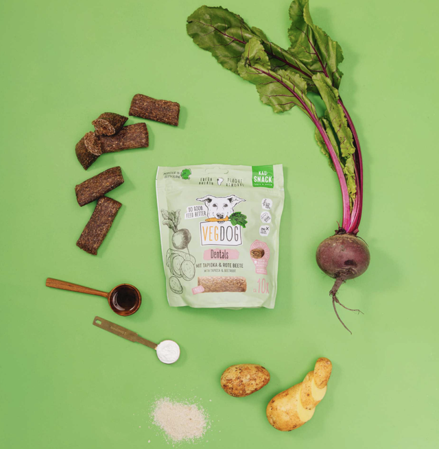 Zähneputzen kann auch Spaß machen und schmecken! Unterstützen kannst du die Zahngesundheit deines Hundes mit unseren DENTALS. Dieser zahnpflegende Kausnack überzeugt nicht nur durch seinen Geschmack. Die enthaltene Rote Bete spendet wertvolle Mineralien und das Tapiokamehl bringt Power für den Tag. So macht Zahnpflege Spaß!