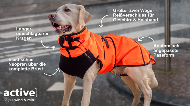Das Cape kann schnell an- und ausgezogen werden. Somit ist es ideal, um den Hund auch vor dem Training, nach dem Training und in Pausenzeiten gut zu schützen.