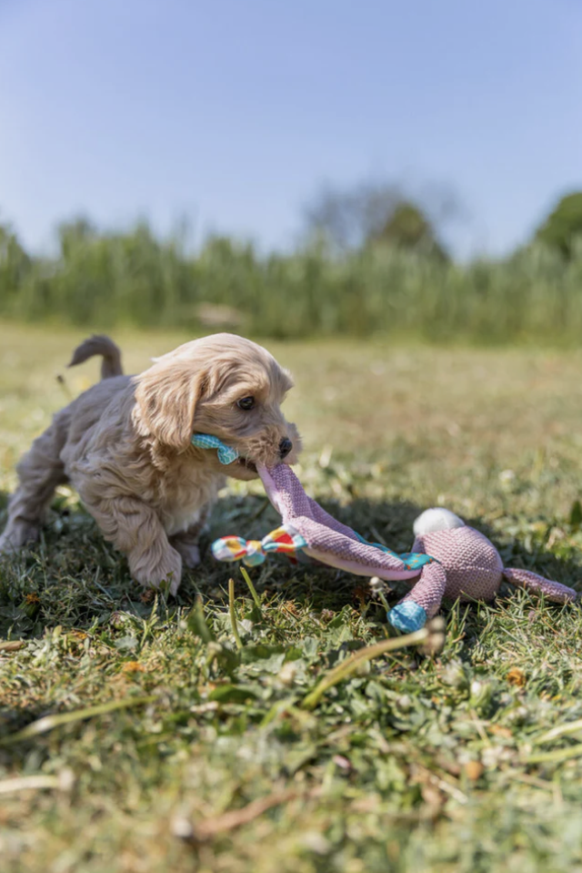 Dieser süße Hase ist das ideale Welpenspielzeug.