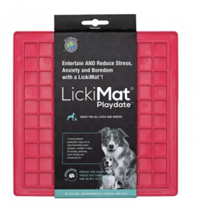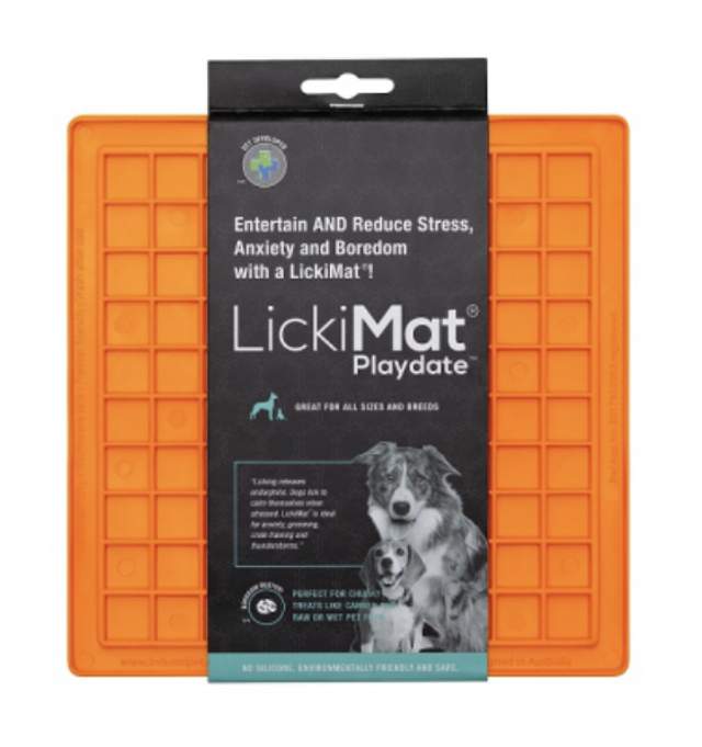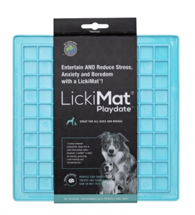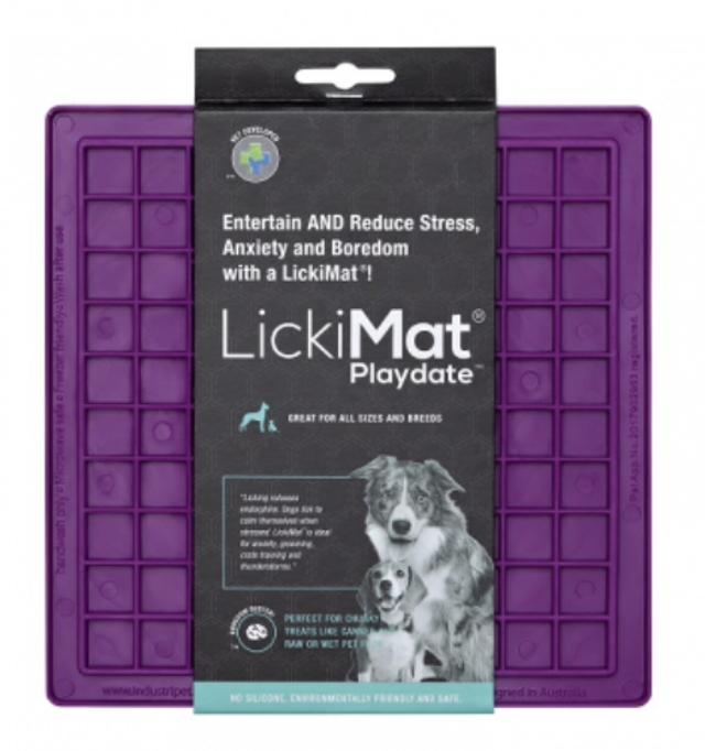 Die Schleckmatte 'LickiMat Playdate' ist ein tolles Beschäftigungstool für deinen Hund. Ob Smoothies, Quark, Nassfutter, zerdrückte Banane, Leberwurst, etc - Dein Hund wird eine ganze Zeit eifrig damit beschäftigt sein, die Leckereien aus der Matte zu schlecken. Eingefroren ist das Ganze auch noch eine tolle Abkühlung und Erfrischung im Sommer!