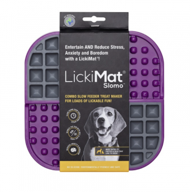 Die Schleckmatte 'LickiMat Slomo' ist eine tolle Beschäftigungsmöglichkeit für deinen Hund. Ob Smoothies, Quark, Nassfutter, zerdrückte Banane, Leberwurst, etc - Dein Hund wird eine ganze Zeit eifrig damit beschäftigt sein, die Leckereien aus der Matte zu schlecken. Eingefroren ist das Ganze auch noch eine tolle Abkühlung und Erfrischung im Sommer!