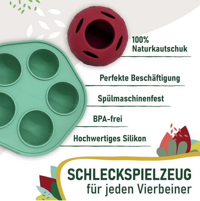 Der SmoothieDog Schleckball ist die perfekte Kombination aus Spiel, Belohnung und Entspannung – entwickelt für Hunde jeden Alters und jeder Rasse. Hergestellt aus 100% Naturkautschuk, vereint er hochwertiges Spielzeug mit sinnvoller Schleckbeschäftigung. Ob im Training, als kreative Ergänzung zur Schleckmatte oder zur Beruhigung: Der Schleckball bietet vielseitige Einsatzmöglichkeiten – zu Hause oder unterwegs.