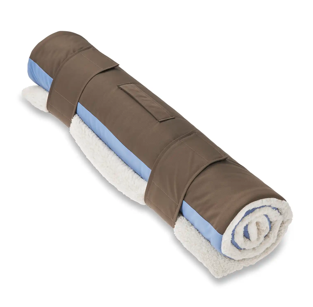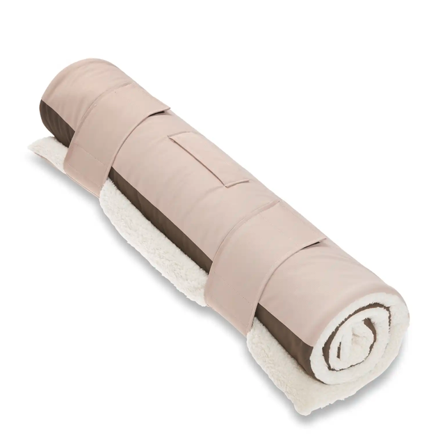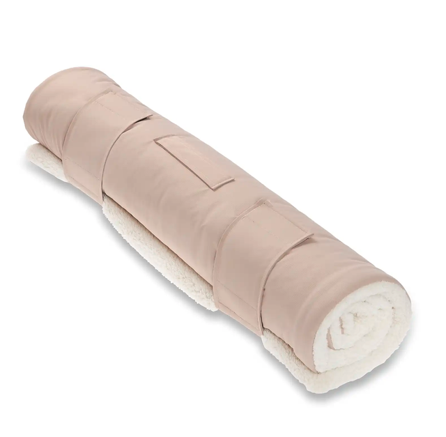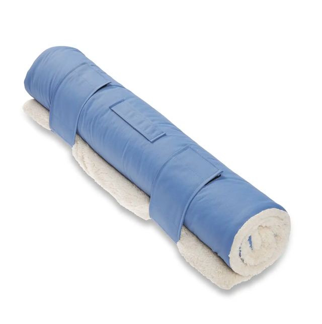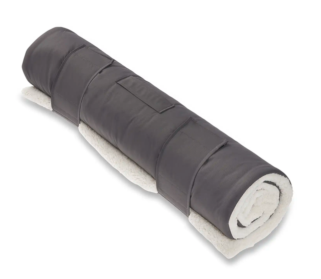 Die Reisedecke lässt sich zu einem handlichen Format aufrollen, mit Klettverschlüssen fixieren. Die Decke ist aus einem sehr pflegeleichten Polyester gefertigt: Die Oberseite besteht aus kuscheligem Plüsch. Dank der Teflon EcoElite™-Imprägnierung ist die Unterseite besonders wasser- und schmutzabweisend.